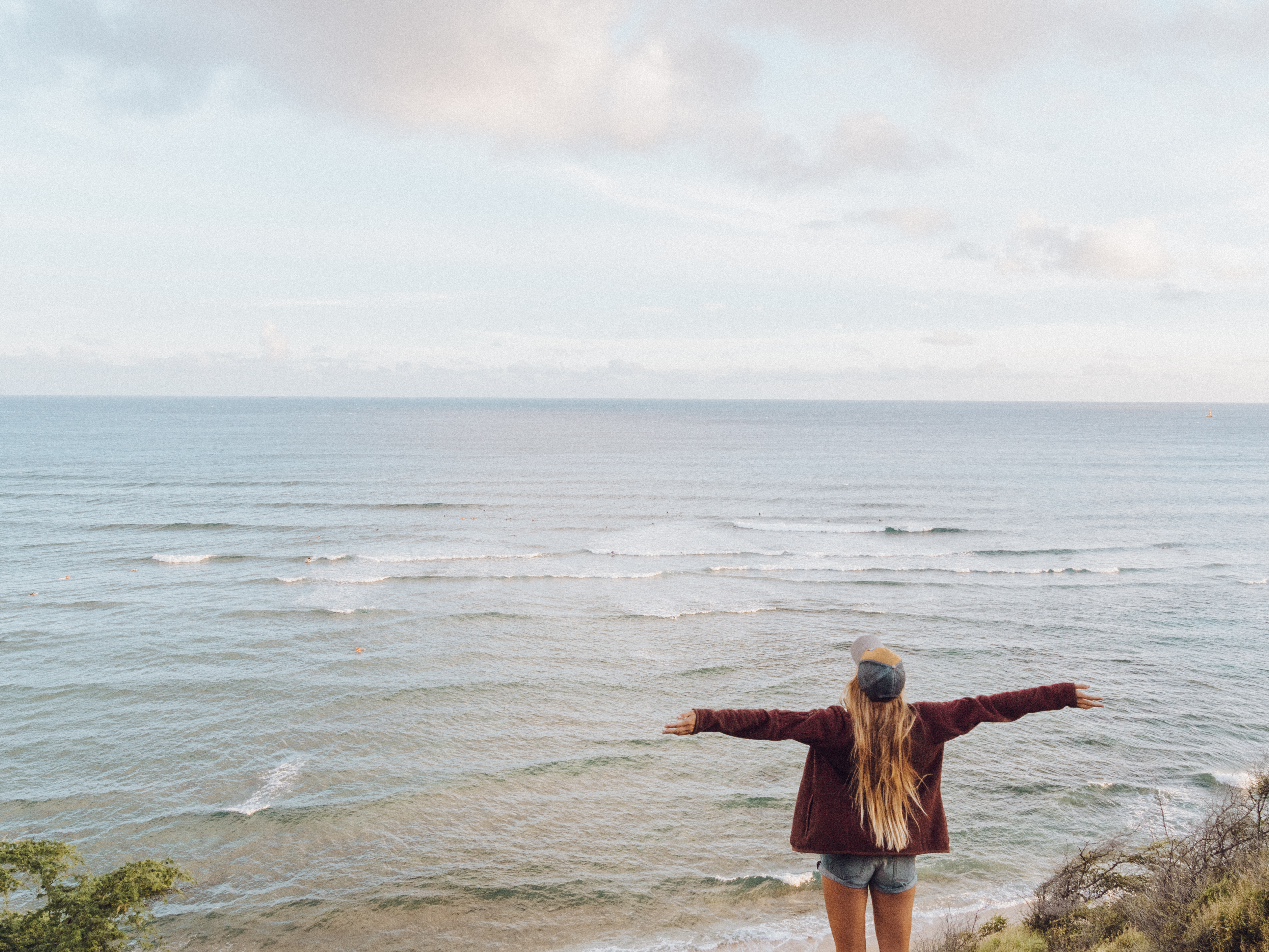 The North Shore of Hawaii is my favourite place to spend time on Oahu. The vibe is so unique. The ocean is so powerful and alluring, despite how dangerous it is for the unexperienced. Locals ride around on their rusty cruisers and food trucks with the best smoothies on the island can be found scattered around the area. I can easily sit on the shore of pipeline for hours upon hours watching and listening to the mesmerising big waves roll in. The day I was there wasn’t huge, so I was delighted to jump into the shore break for a few moments.