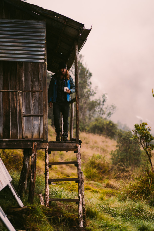 Betty’s to basecamp was a reasonable climb, doing around a vertical kilometre in elevation. It was rather muddy as I often found my ankle fully submerged in swamp-like mud. I hiked with a large bag, full of sleeping bags, cameras and snacks. Arriving at basecamp, we found a small hut and “A-frame” structure with a kitchen inside. This is where we would sleep for the night. Once again, we sat by the fire, drank tea but this time tried to quickly acclimatize for the cold and attitude.